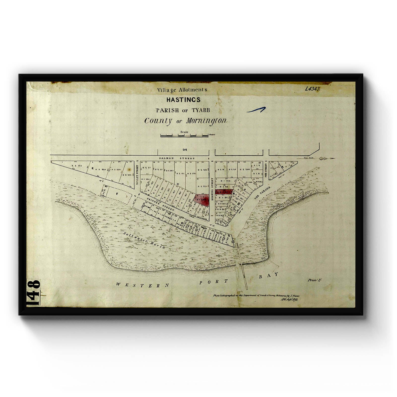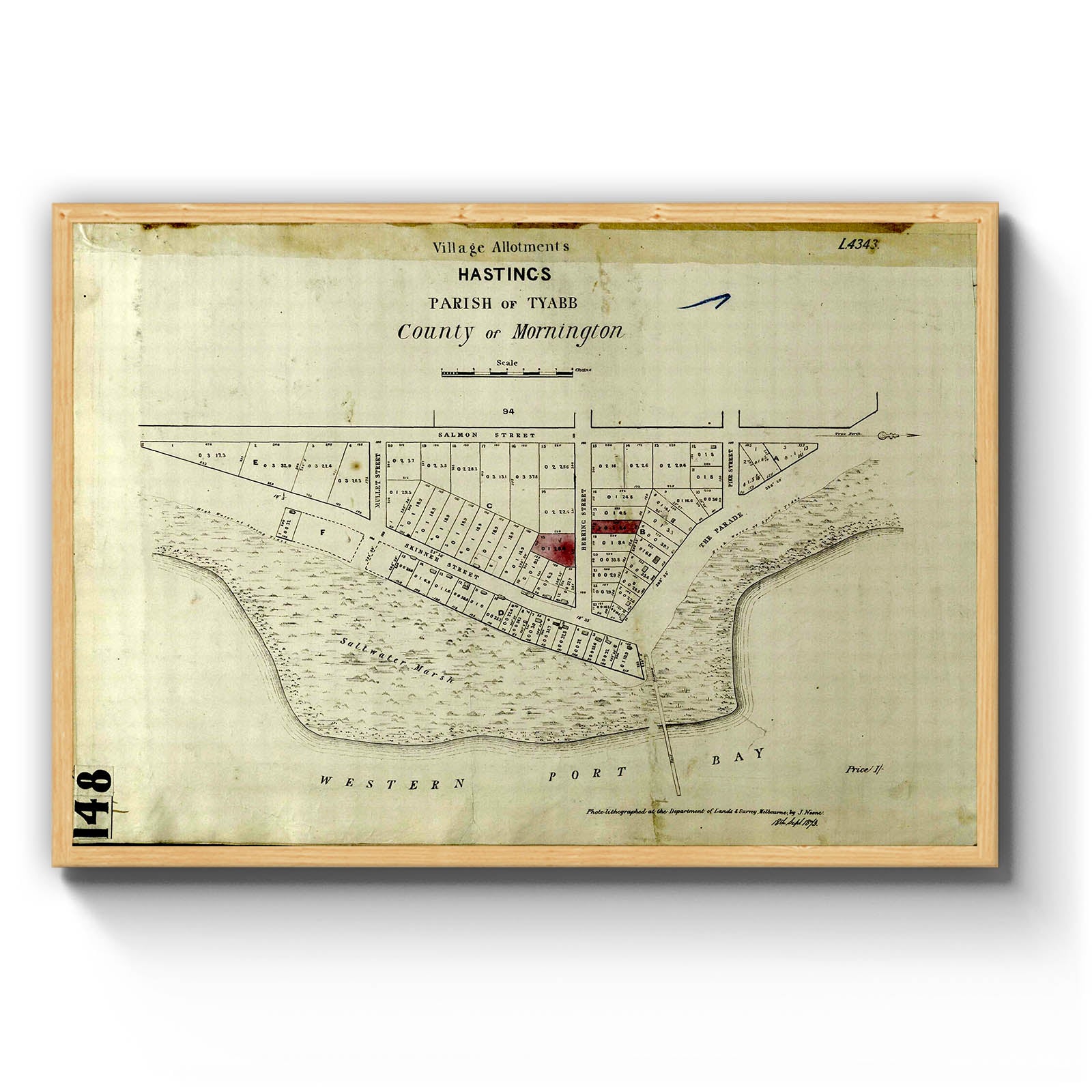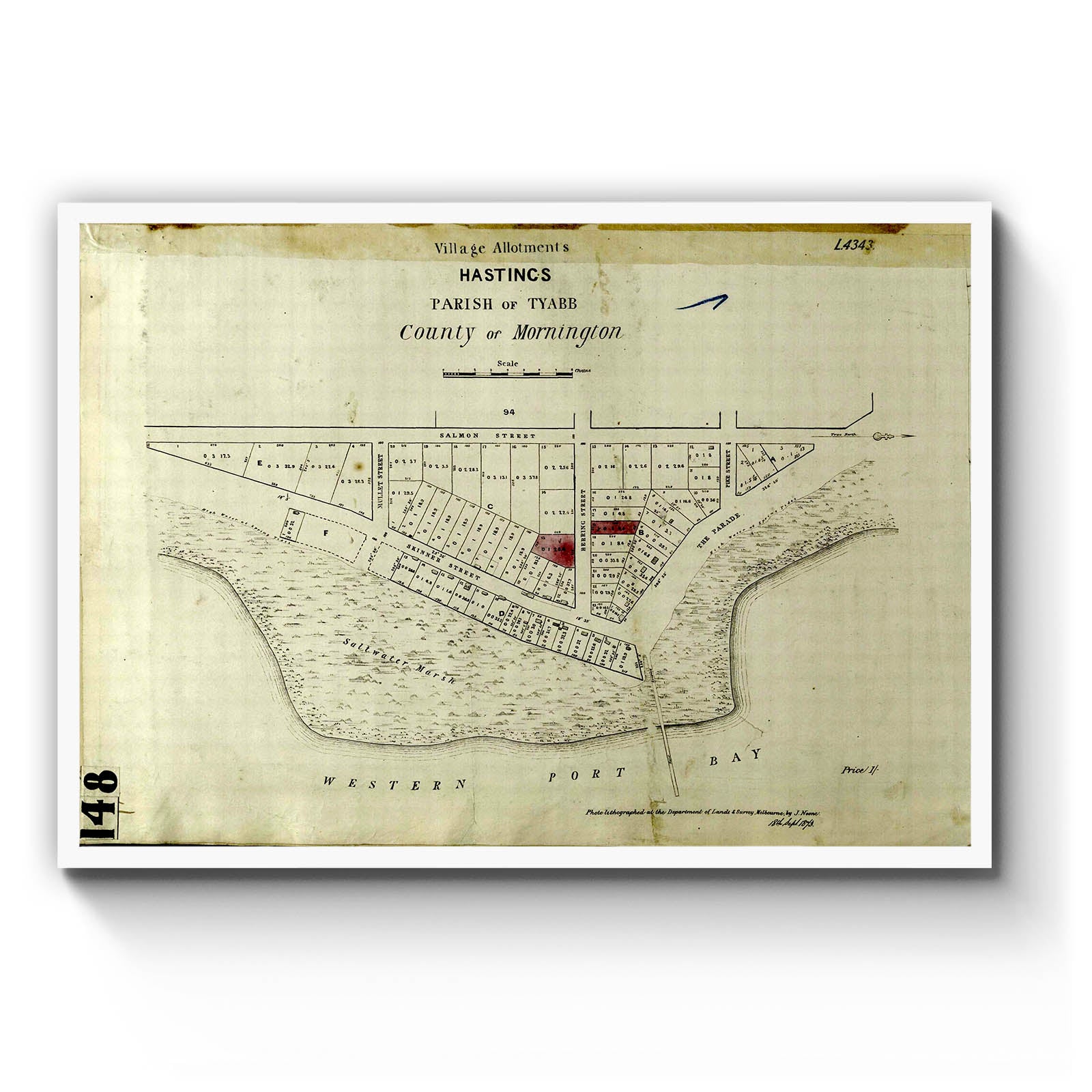 Village allotments, Hastings, Parish of Tyabb, County of Mornington [cartographic material]./ photo-lithographed at the Department of Lands and Survey, Melbourne by J. Noone. 1873.