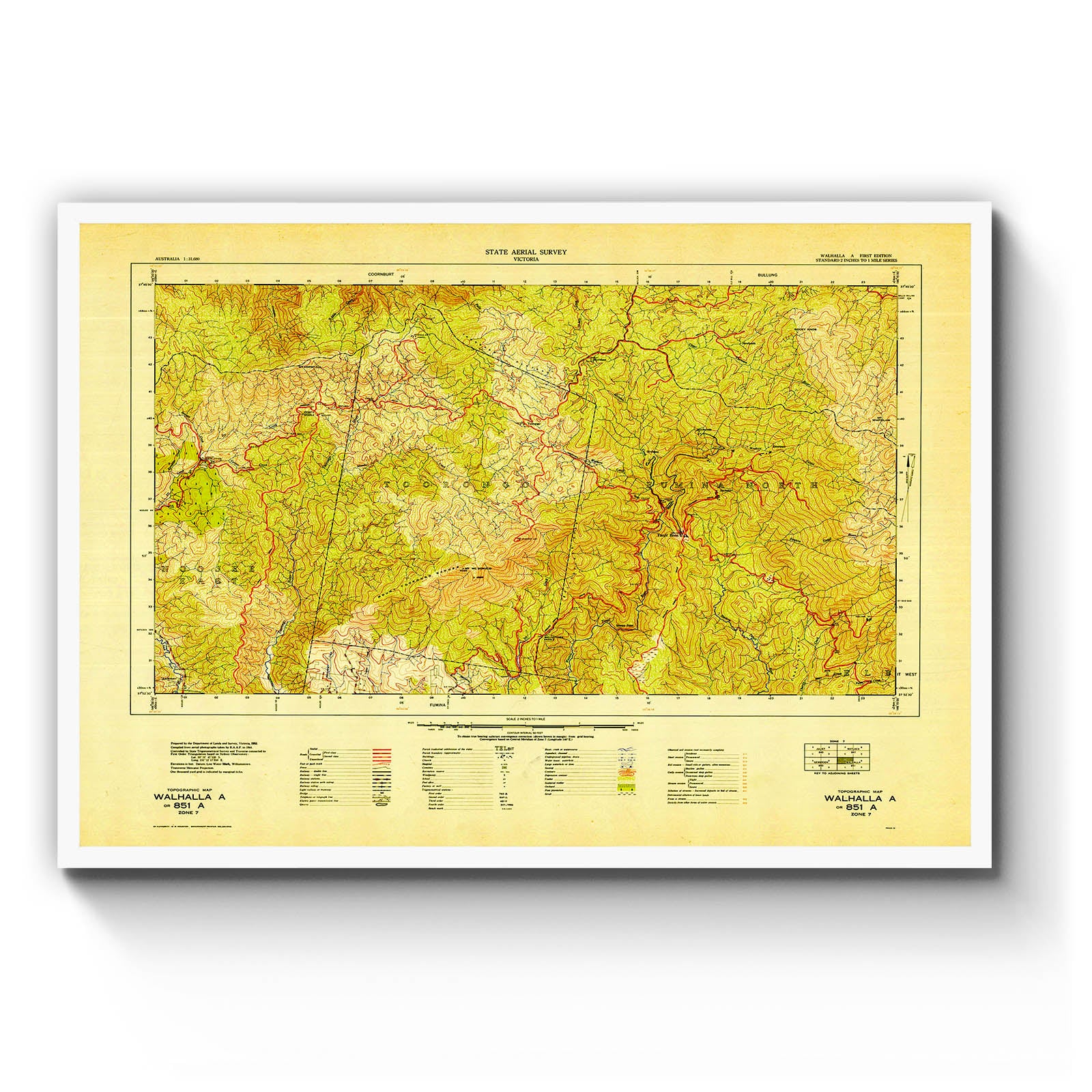 Australia 1:31,680 state aerial survey Victoria: standard 2 inches to 1 mile series topographic map. 851 A, Walhalla A [cartographic material] / prepared by the Department of Lands and Survey, Victoria. 1952