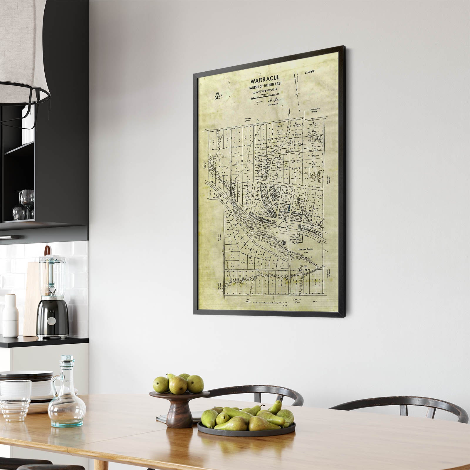 Recently moving to Harcourt and being interested in the history of the area, it seemed fitting to purchase a vintage map of the area which is displayed on our kitchen wall for us to study easily, identifying the block of land we bought. Nicely framed too.