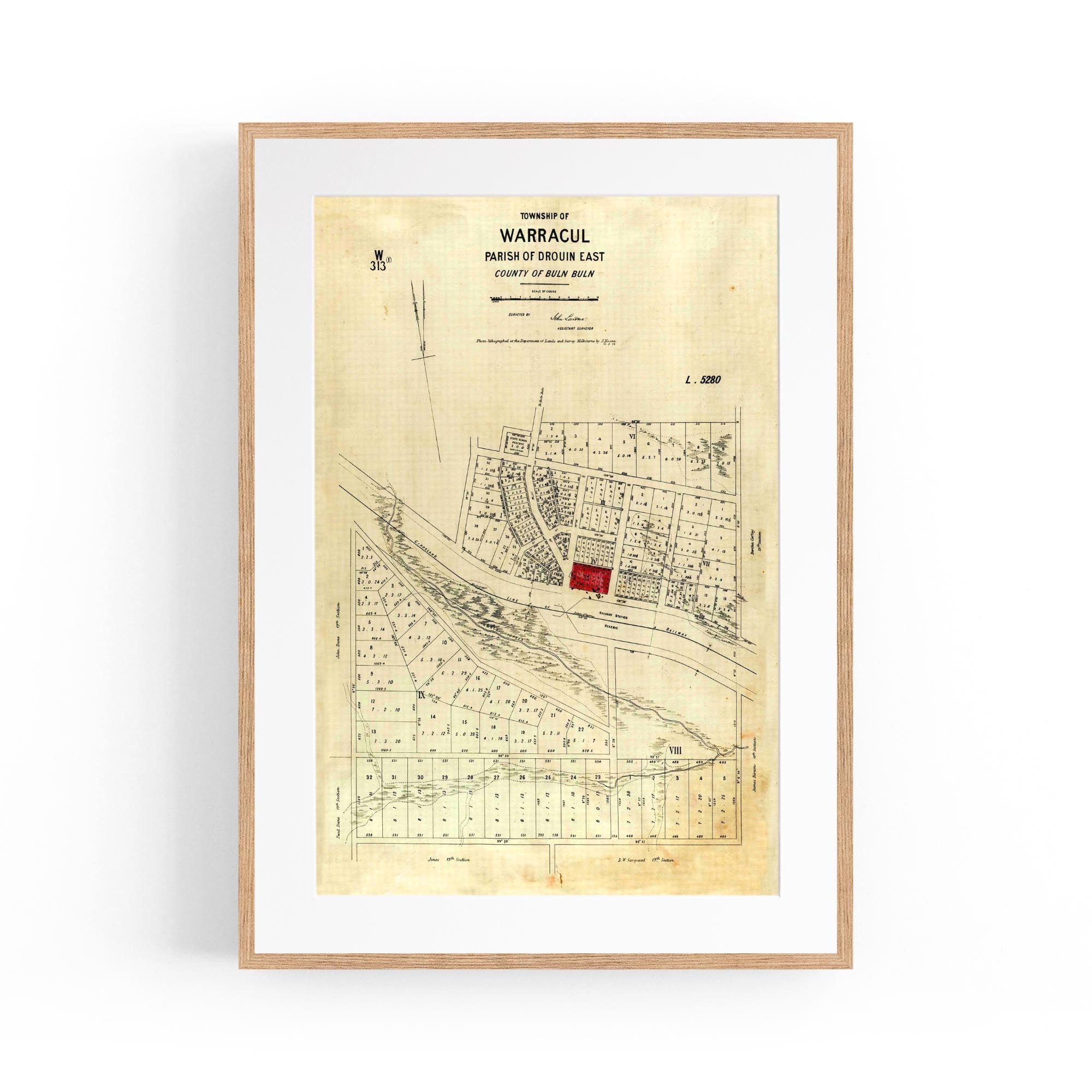 Recently moving to Harcourt and being interested in the history of the area, it seemed fitting to purchase a vintage map of the area which is displayed on our kitchen wall for us to study easily, identifying the block of land we bought. Nicely framed too.