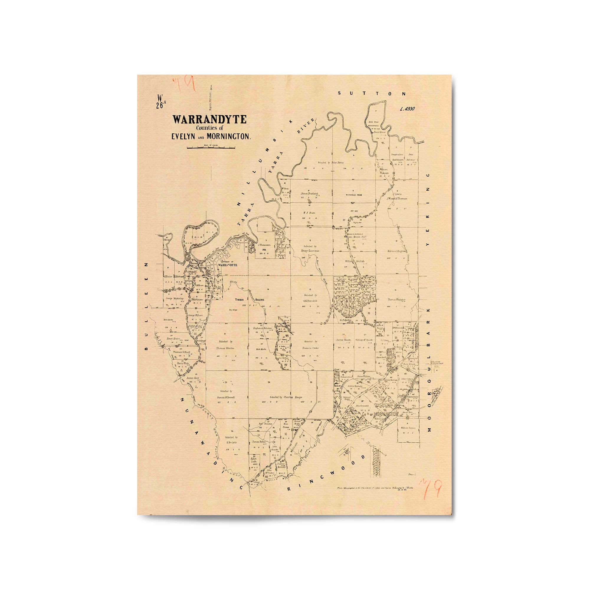 Warrandyte, Counties of Evelyn and Mornington. Photo-lithographed at the department of Lands and Survey, Melbourne, by J. Noone. 1887.