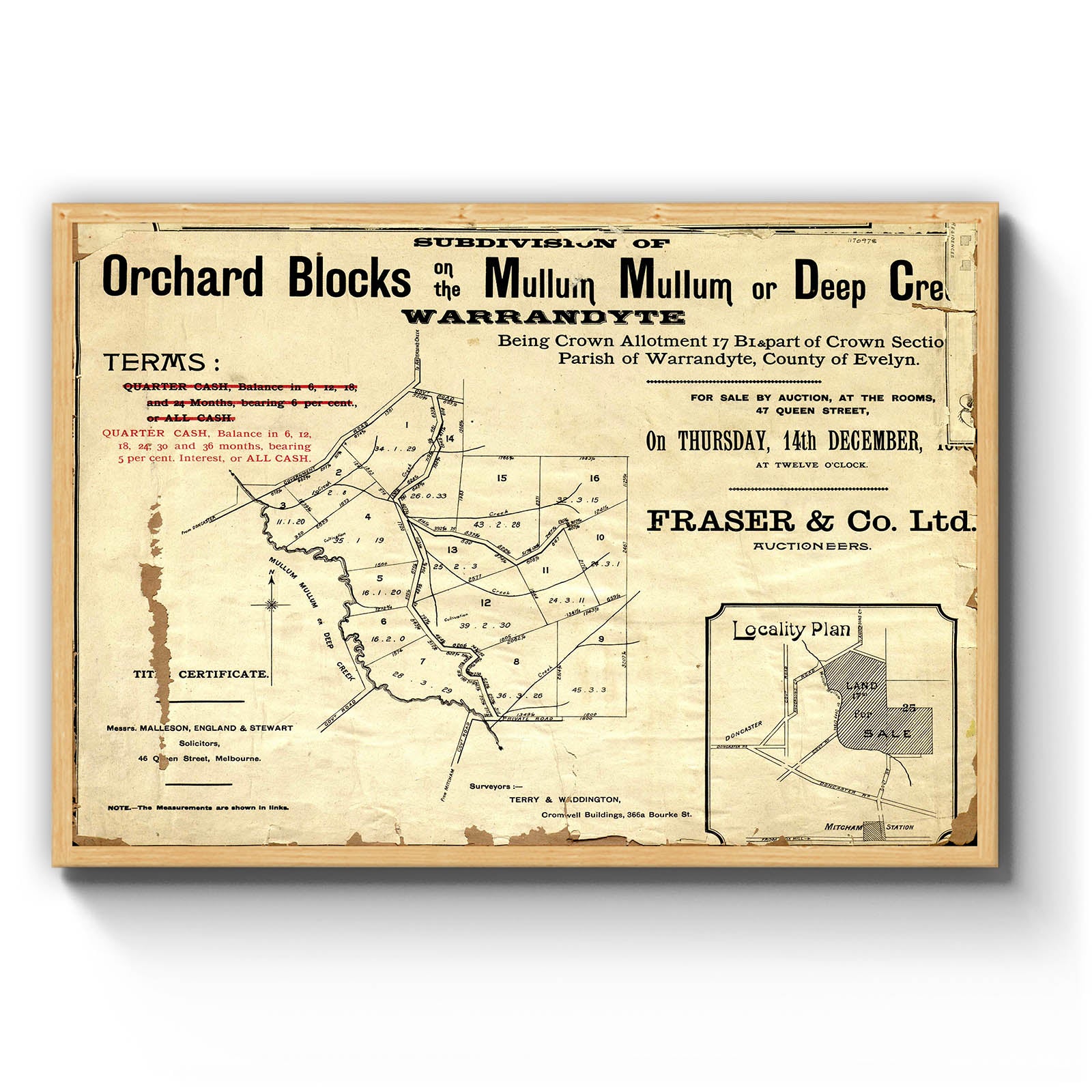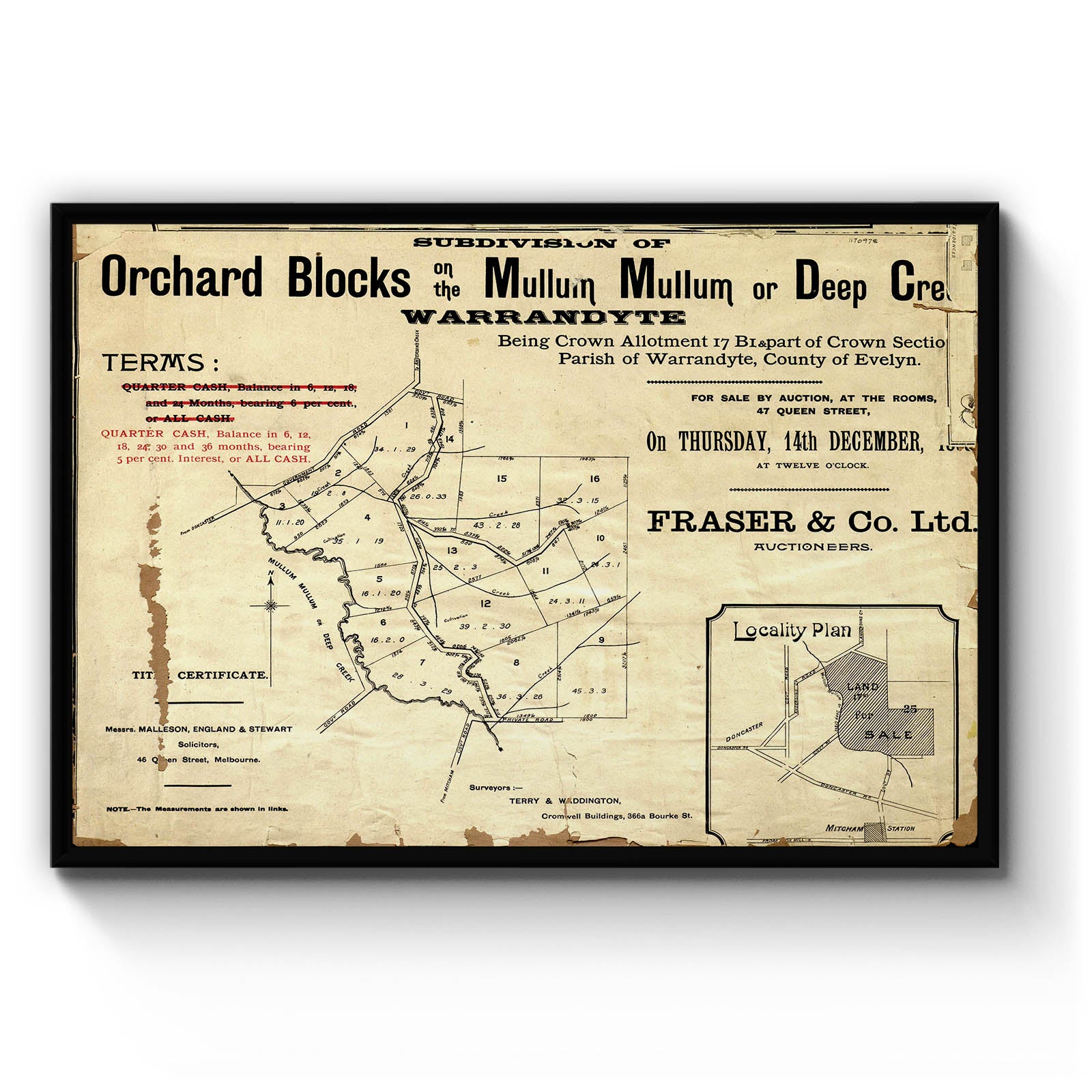 Subdivision of Orchard Blocks on the Mullum Mullum or Deep Creek Warrandyte (Eastern Side of Mullum Mullum Creek) [cartographic material]. [1882?]