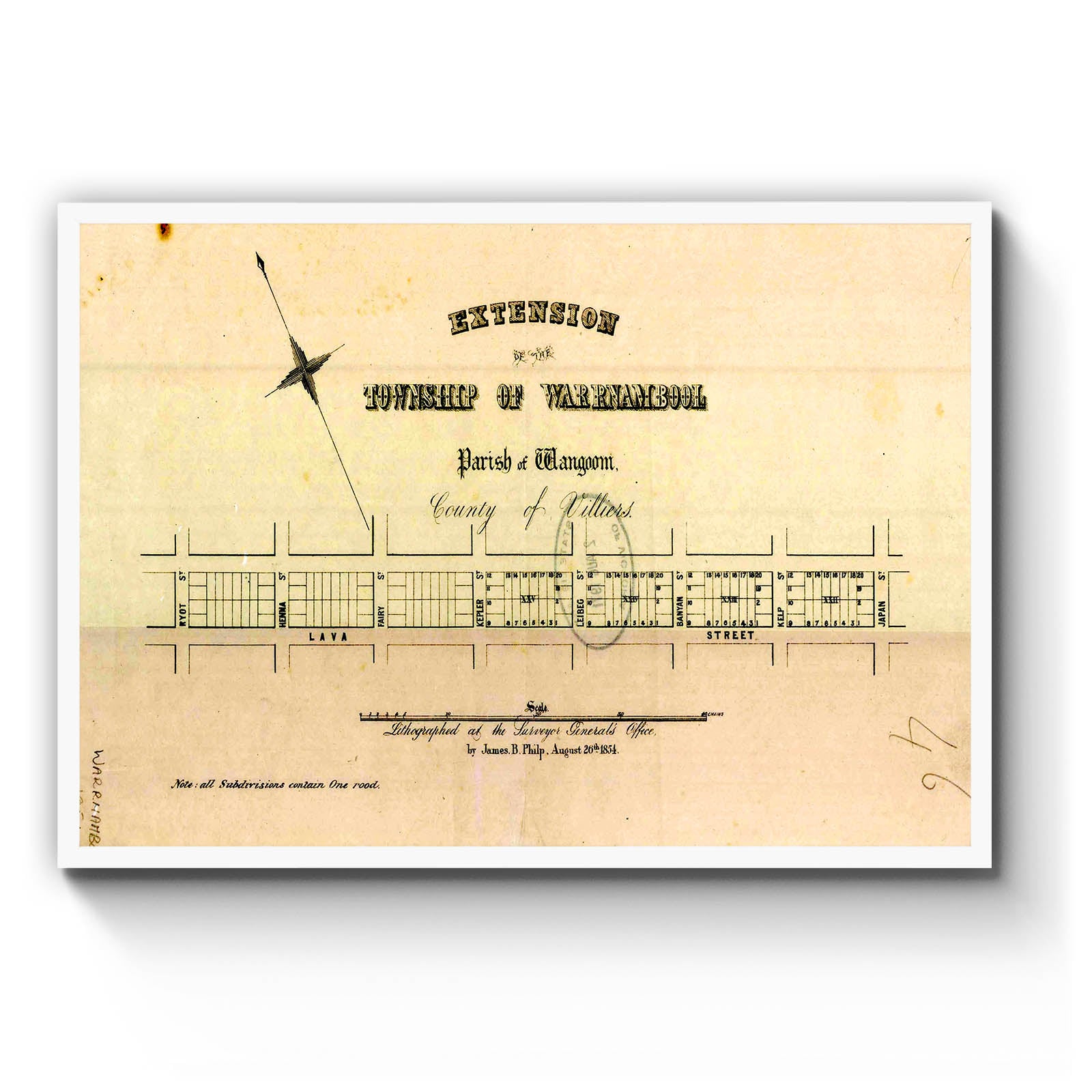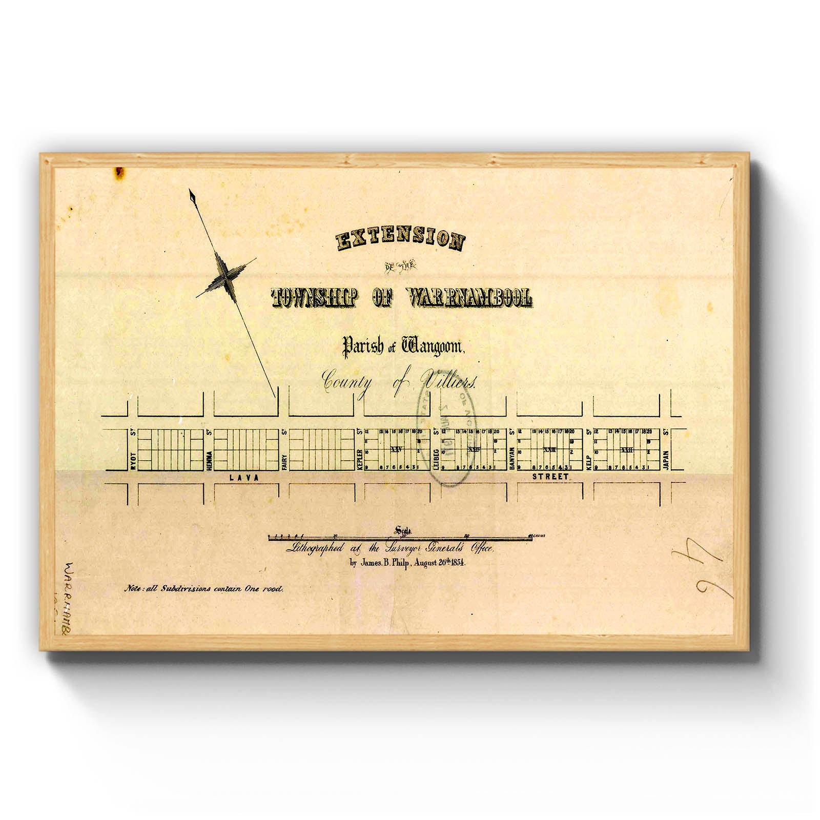 Recently moving to Harcourt and being interested in the history of the area, it seemed fitting to purchase a vintage map of the area which is displayed on our kitchen wall for us to study easily, identifying the block of land we bought. Nicely framed too.