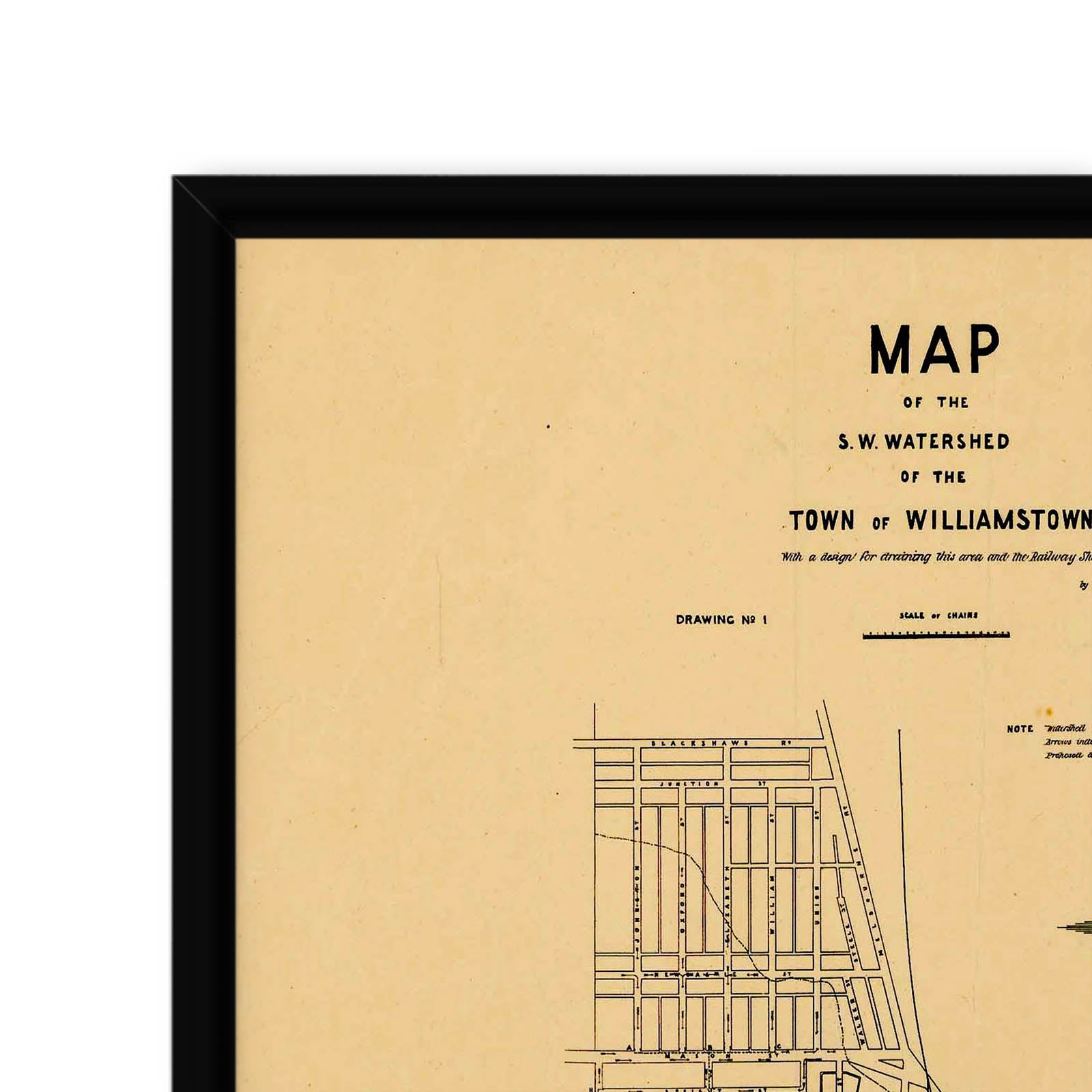 Map of the S.W. watershed of the town of Williamstown [cartographic material]: with a design for draining this area and the railway shops / by Henry V. Champion ... Town Surveyor, Williamstown, Sept. 9th, 1890.