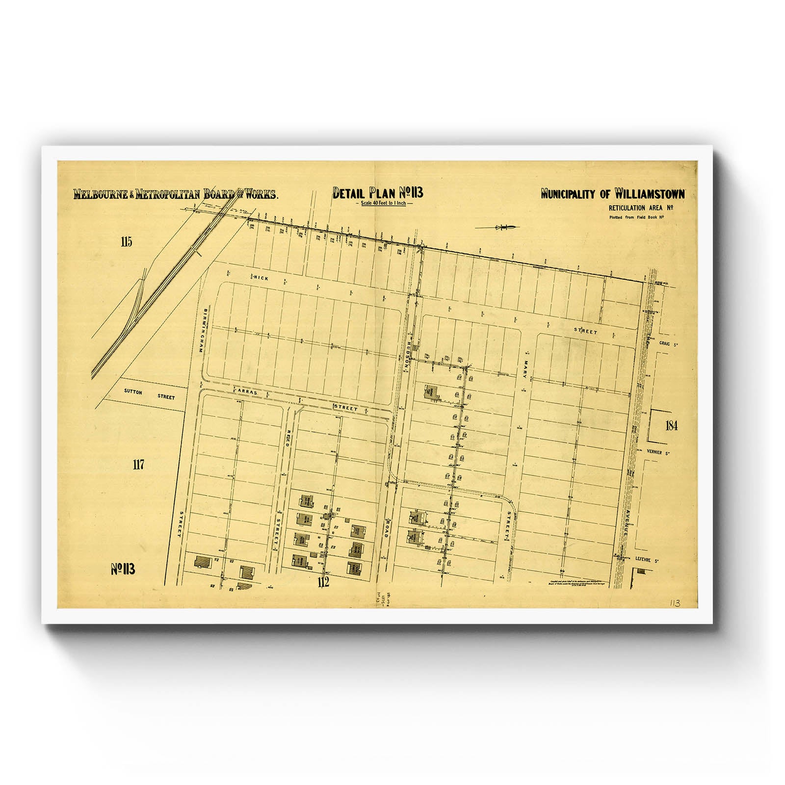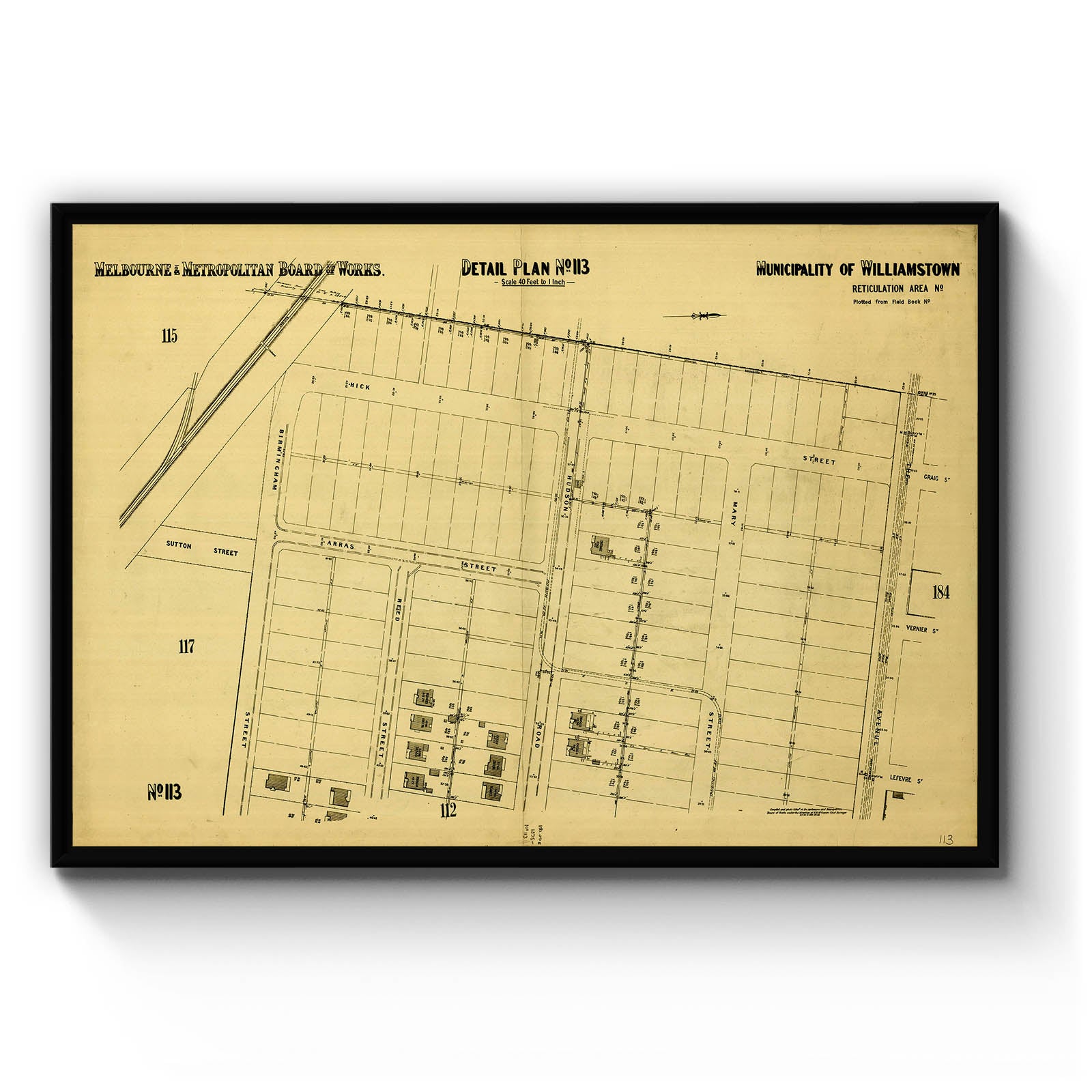 Recently moving to Harcourt and being interested in the history of the area, it seemed fitting to purchase a vintage map of the area which is displayed on our kitchen wall for us to study easily, identifying the block of land we bought. Nicely framed too.
