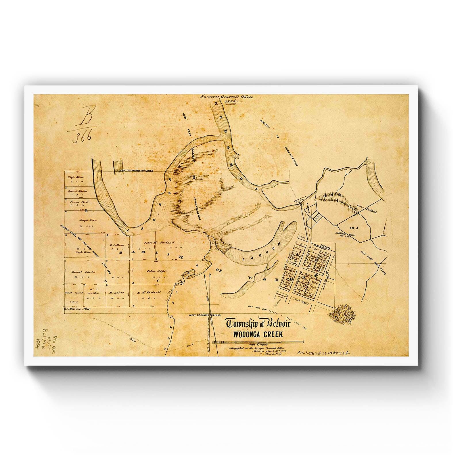 Township of Belvoir [cartographic material] / lithographed at the Surveyor General's Office, Melbourne, March 30th 1854 by James B Philp. 1854.