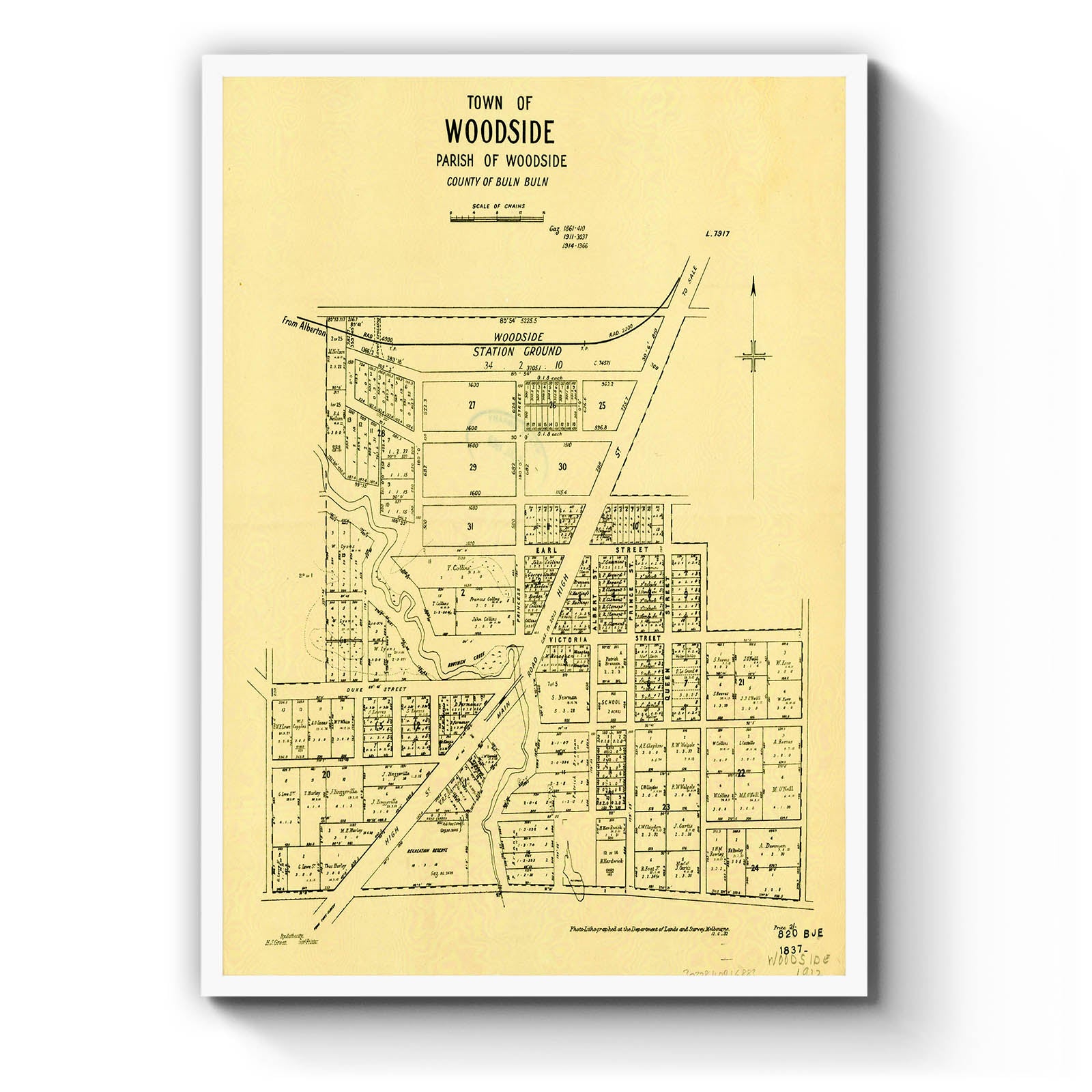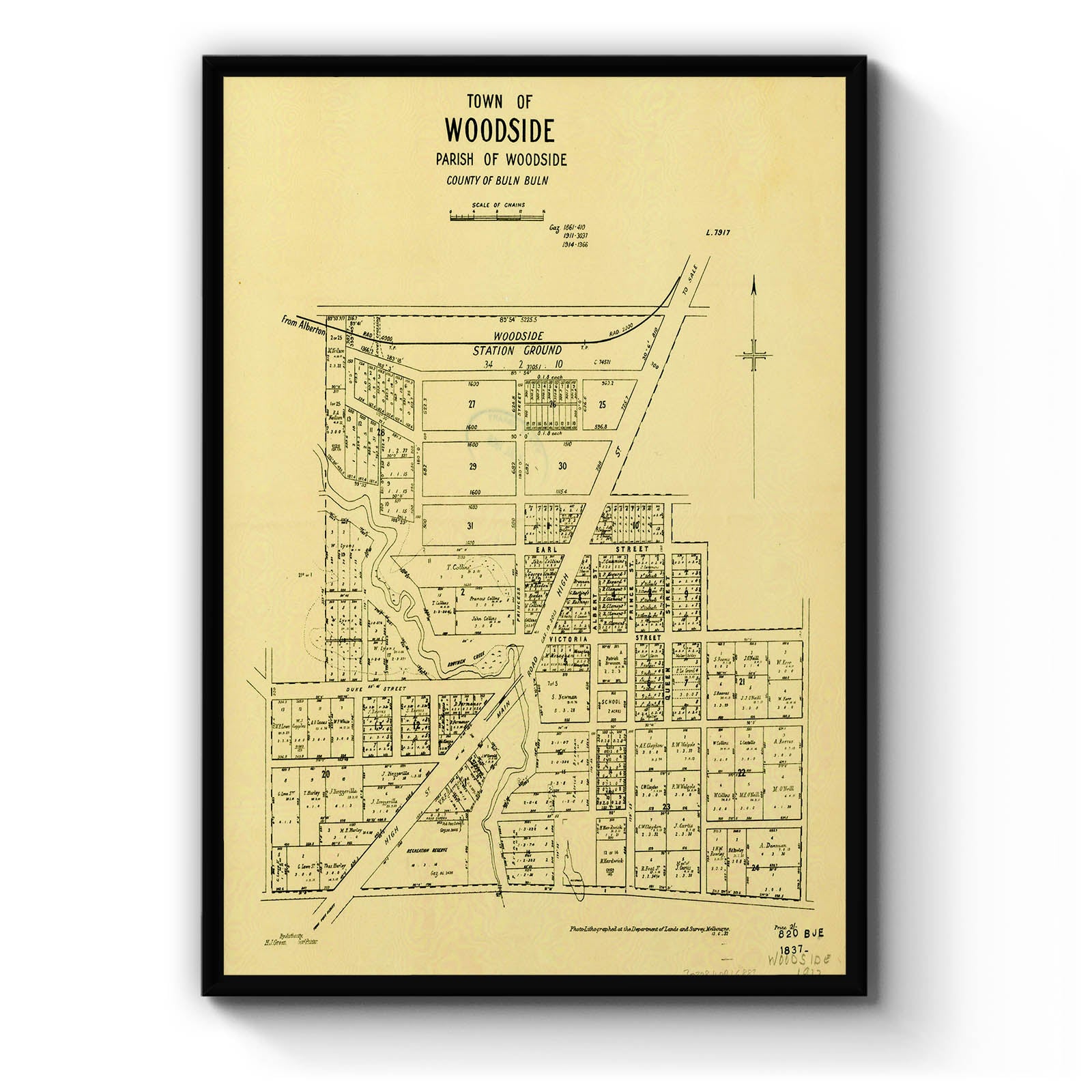 Town of Woodside, Parish of Woodside, County of Buln Buln [cartographic material] / photo-lithographed at the Department of Lands and Survey, Melbourne. 1932.