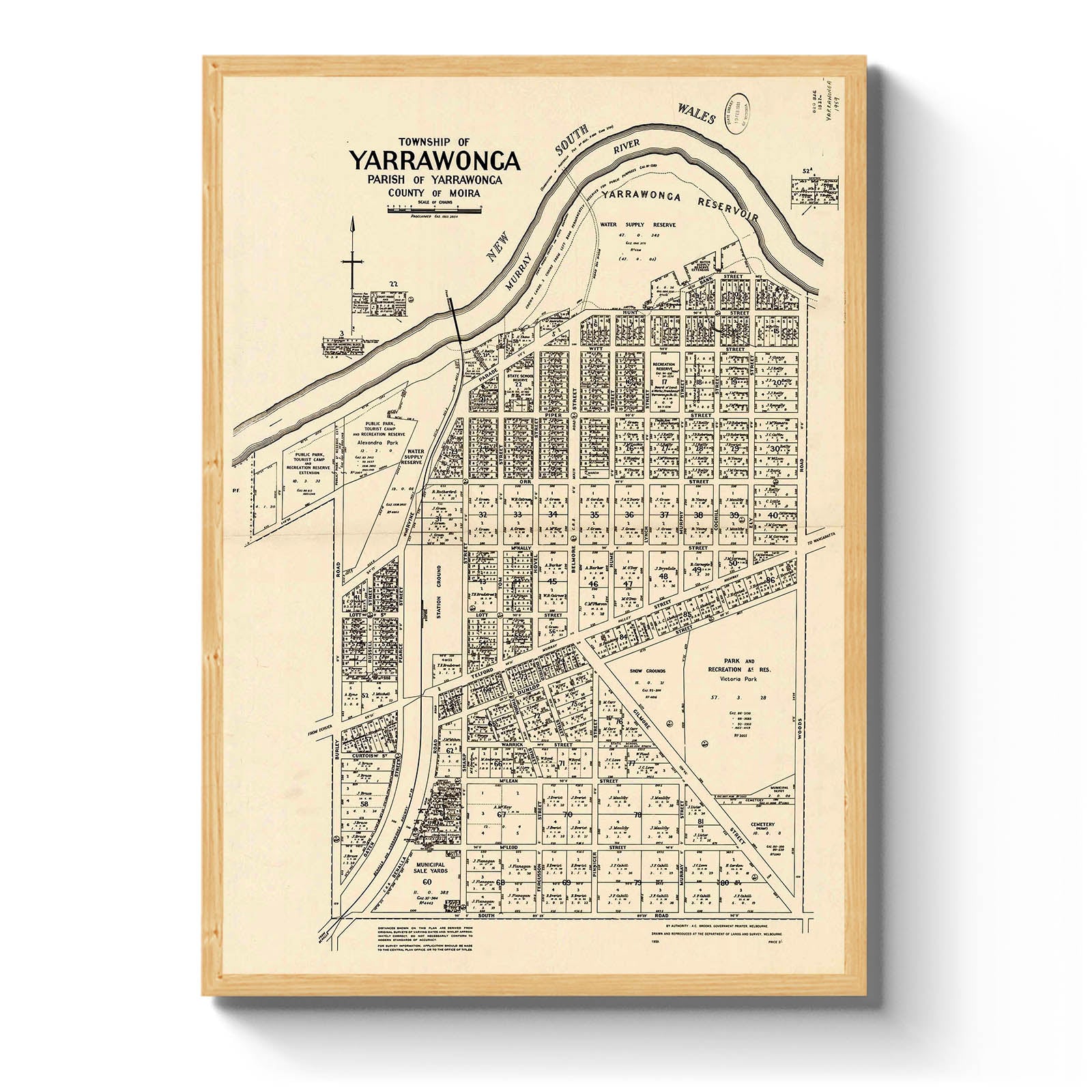 Township of Yarrawonga, Parish of Yarrawonga, County of Moira [cartographic material] / drawn and reproduced at the Department of Lands and Survey, Melbourne. 1959